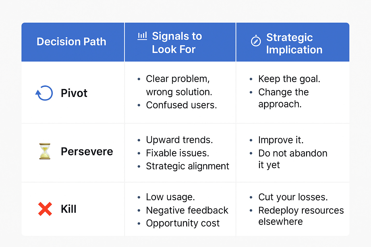 Whether you pivot, persevere, or kill, your job is the same: